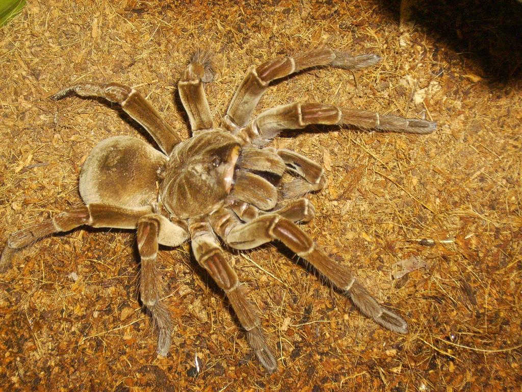 Es la araña de mayor tamaño del planeta tierra hasta ahora encontrada ya que puede alcanzar los 28 o 30 centímetros y pesar más de 100 gramos. Tienen el cuerpo peludo que utilizan como un mecanismo de defensa ya que son irritantes al contacto con la piel.