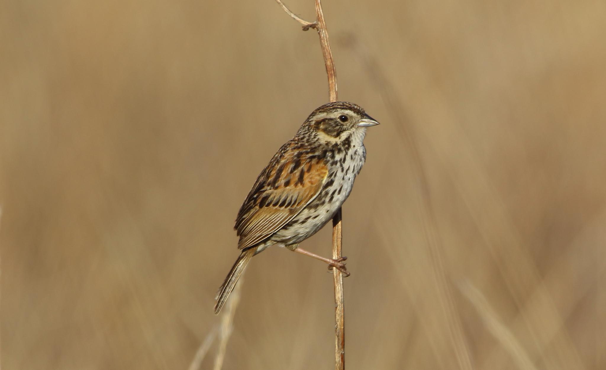 El gorrión de la Sierra Madre es endémico de México y habita en praderas y pastos altos, pudiendo encontrarse en zonas de cultivos y elevaciones entre 2 200 y 3 050 metros sobre el nivel del mar. La parte superior de su cuerpo es de color marrón amarillento con manchas oscuras, mientras que la inferior es grisácea clara. Esta ave también ha sido declarada como "en peligro de extinción" debido a la alteración de su hábitat.