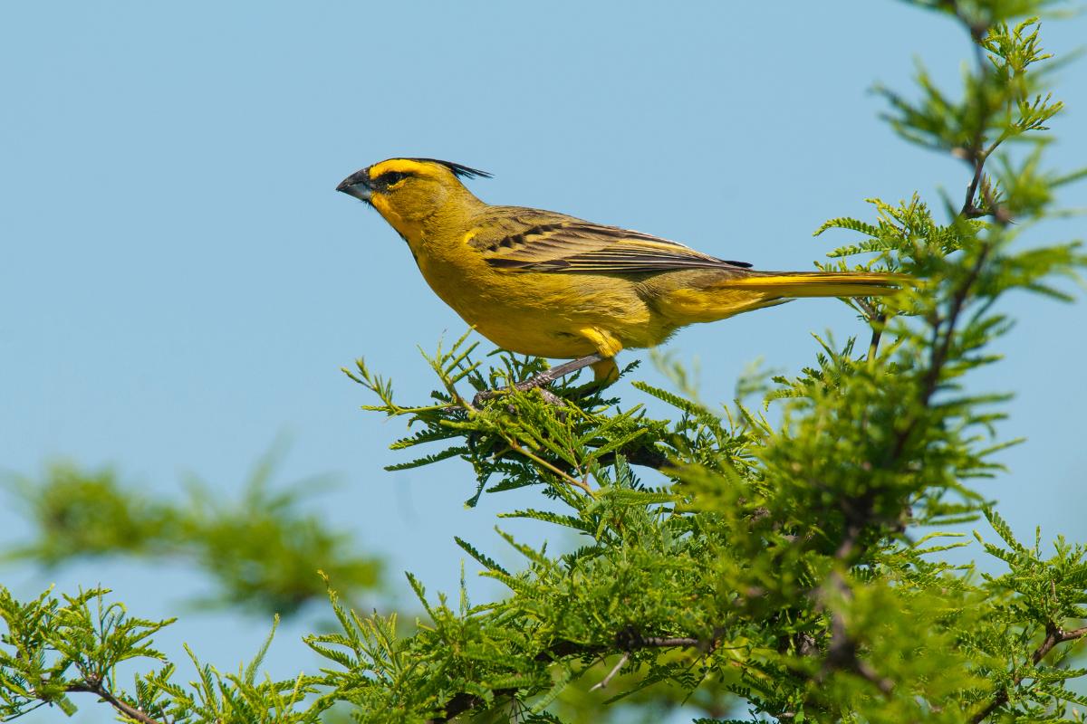 Otra de las aves argentinas en peligro de extinción es el cardenal amarillo. Es una especie de ave que pertenece a la Familia Thraupidae y es endémico de América del Sur, donde se distribuye en el sur de Brasil, en Uruguay y Argentina, específicamente de las regiones de las pampas y del centro-oeste del país, donde prefiere hábitats abiertos y semiarbolados, como pastizales, sabanas y zonas de matorrales.