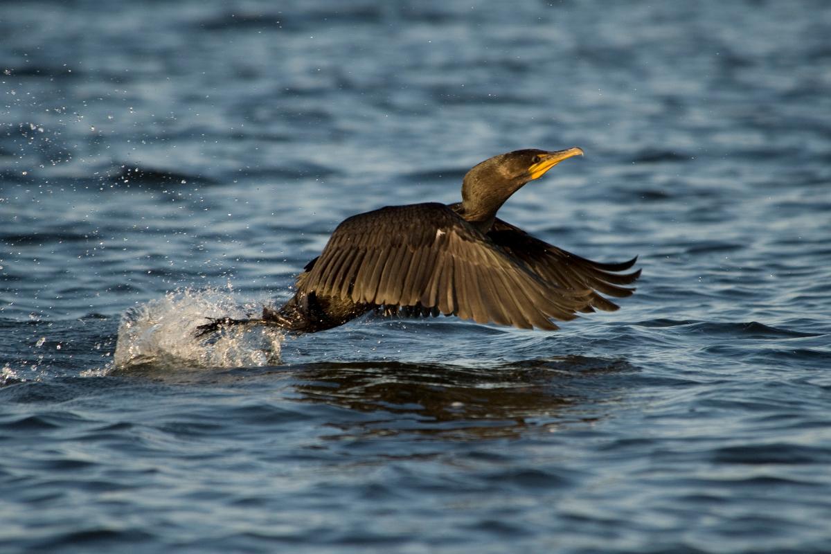 Después de bucear, a menudo se le ve secándose con las alas extendidas al sol. Los cormoranes habitan en una variedad de entornos, desde costas marinas hasta ríos y lagos, y suelen anidar en colonias.
