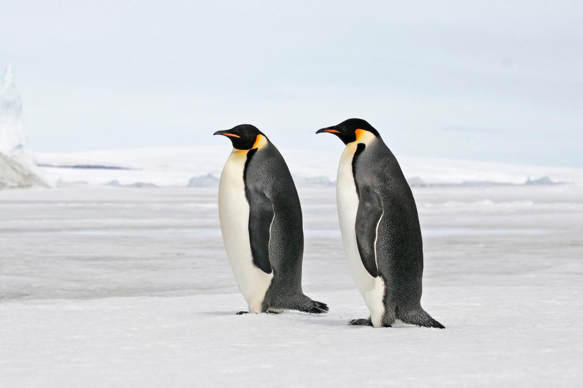 El pingüino emperador es la especie de pingüino más grande y una de las más icónicas, conocida por su adaptación extrema a las duras condiciones de la Antártida, pero todos los tipos de pingüinos son aves marinas. Los adultos pueden alcanzar hasta 1,2 metros de altura y pesar entre 20 y 40 kilogramos. Su característico plumaje, con una espalda negra, un pecho blanco y toques de color amarillo en la cabeza y el cuello, les proporciona una excelente protección térmica y camuflaje en su entorno helado.