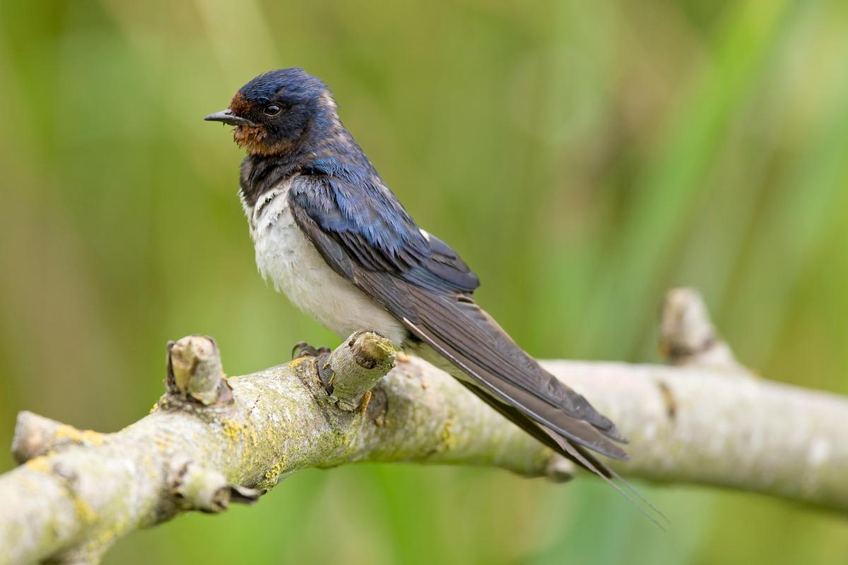 Una de las aves migratorias de México es la golondrina común (Hirundo rustica), la cual es nativa de América, Asia, África, Europa y Oceanía, de modo que tiene una amplísima distribución. Este ejemplo de aves migratorias de México se desarrolla en campos abiertos y de cultivos, pueblos y ciudades, pero en Norteamérica opta por espacios rurales.