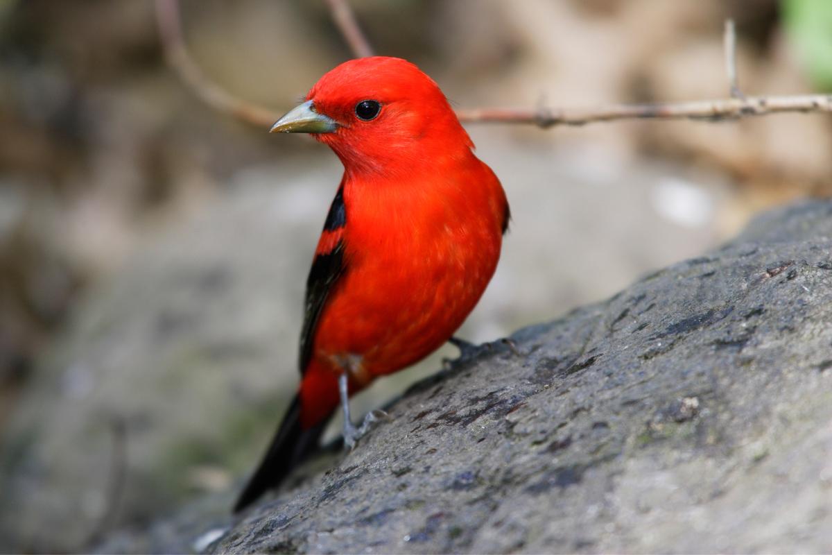 Esta especie de ave que migra hacia Colombia también tiene como nombre común piranga alinegra (Piranga olivácea). Es nativa de Canadá y los Estados Unidos, donde tiene los sitios de reproducción. Mide entre 16 a 17 cm, en la época reproductiva los machos son rojos con las alas y cola negra, fuera de esta temporada los machos son similares a las hembras, de color verde oliváceo, vientre amarillo verdoso y alas pardas.