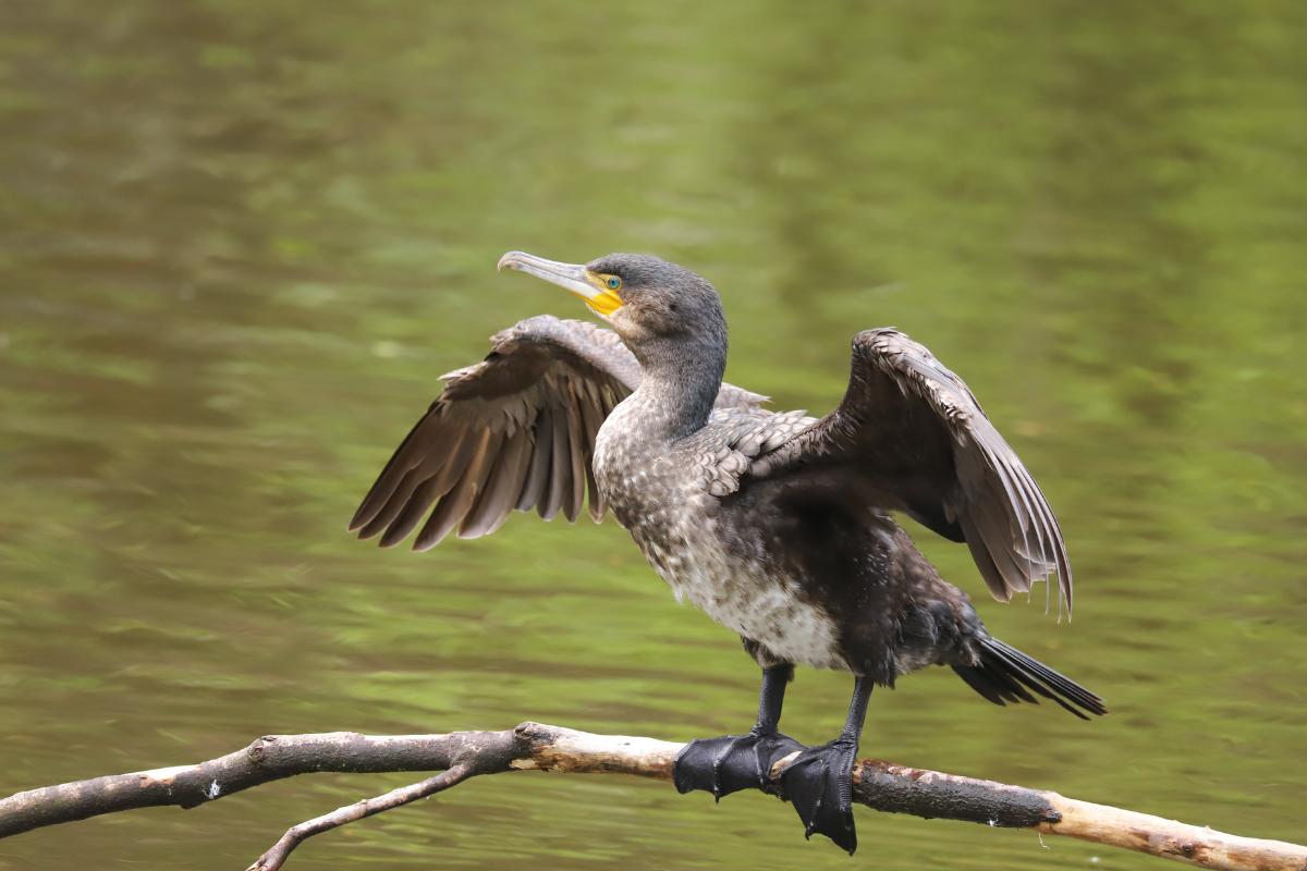 Otras de las aves palmípedas que existen son las conocidas como cormoranes. Dado que son varias las especies que hay, hemos seleccionado al cormorán grande como ejemplo representativo del grupo. Esta es un ave acuática que tiene una amplia distribución en América, Asia, África y Oceanía. Su cuerpo es robusto y mide entre 80 y 100 cm de largo. En cuanto al peso, ronda los 2,6-3,7 kg. El plumaje es mayormente negro, con reflejos verdes metálicos y una mancha blanca en la garganta durante la temporada de reproducción.