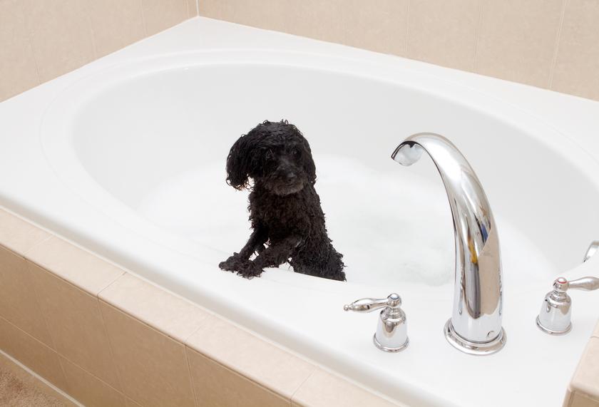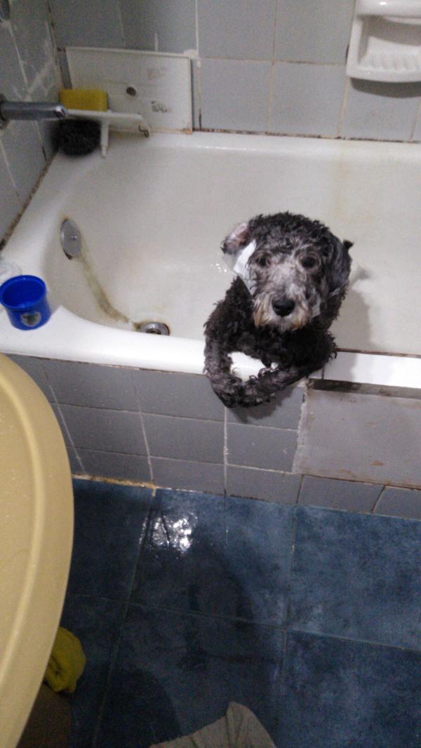 - Ayuda a tu perro a entrar en la bañera, ¡cuidado con los resbalones!