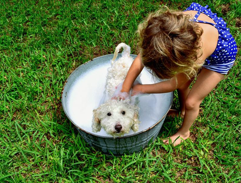 - Dedica tiempo al aclarado para que no queden restos de jabón en su pelaje.