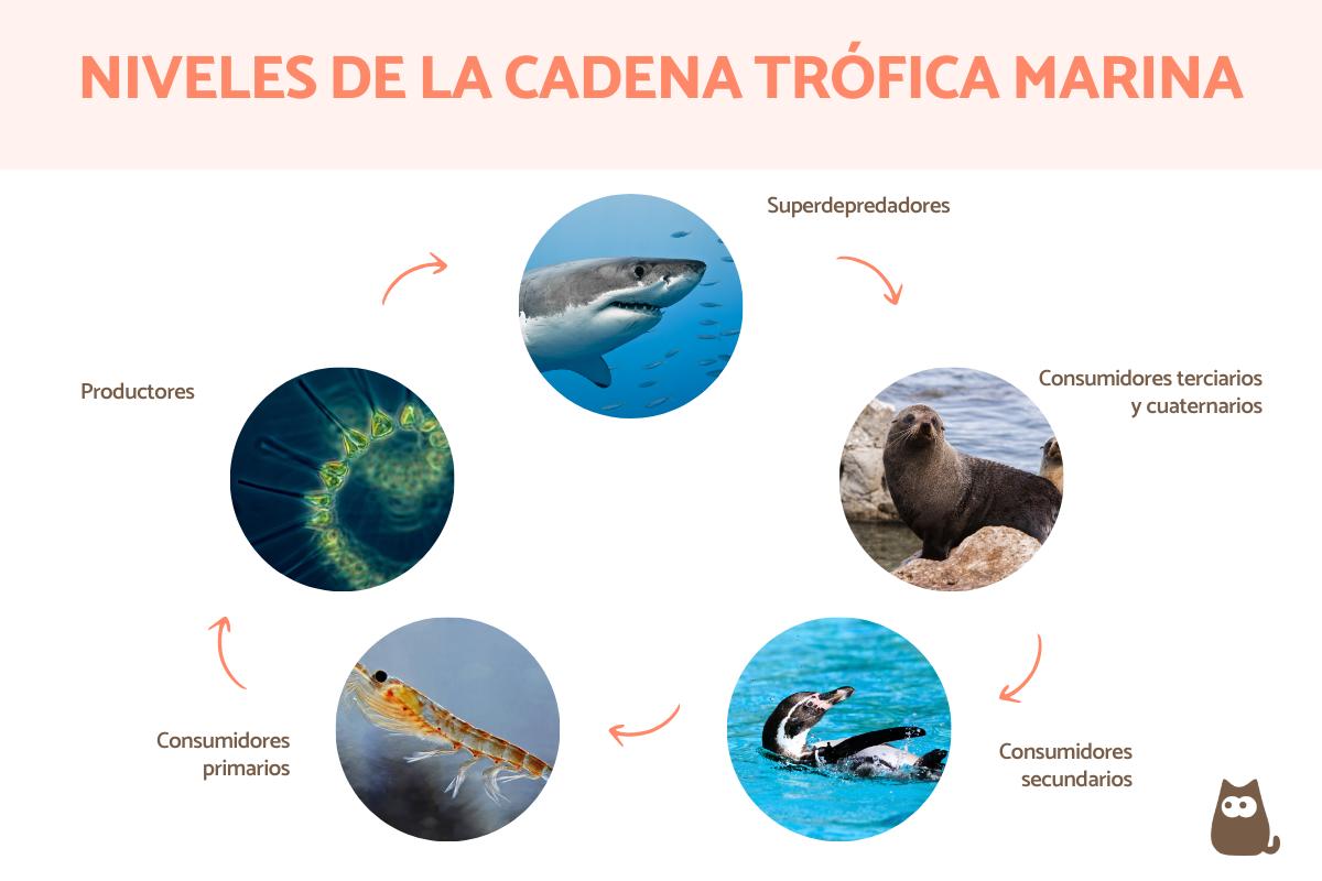Por ello, a continuación vamos a ver más detalladamente en qué consisten los niveles de la cadena alimentaria marina. ¡Sigue leyendo!