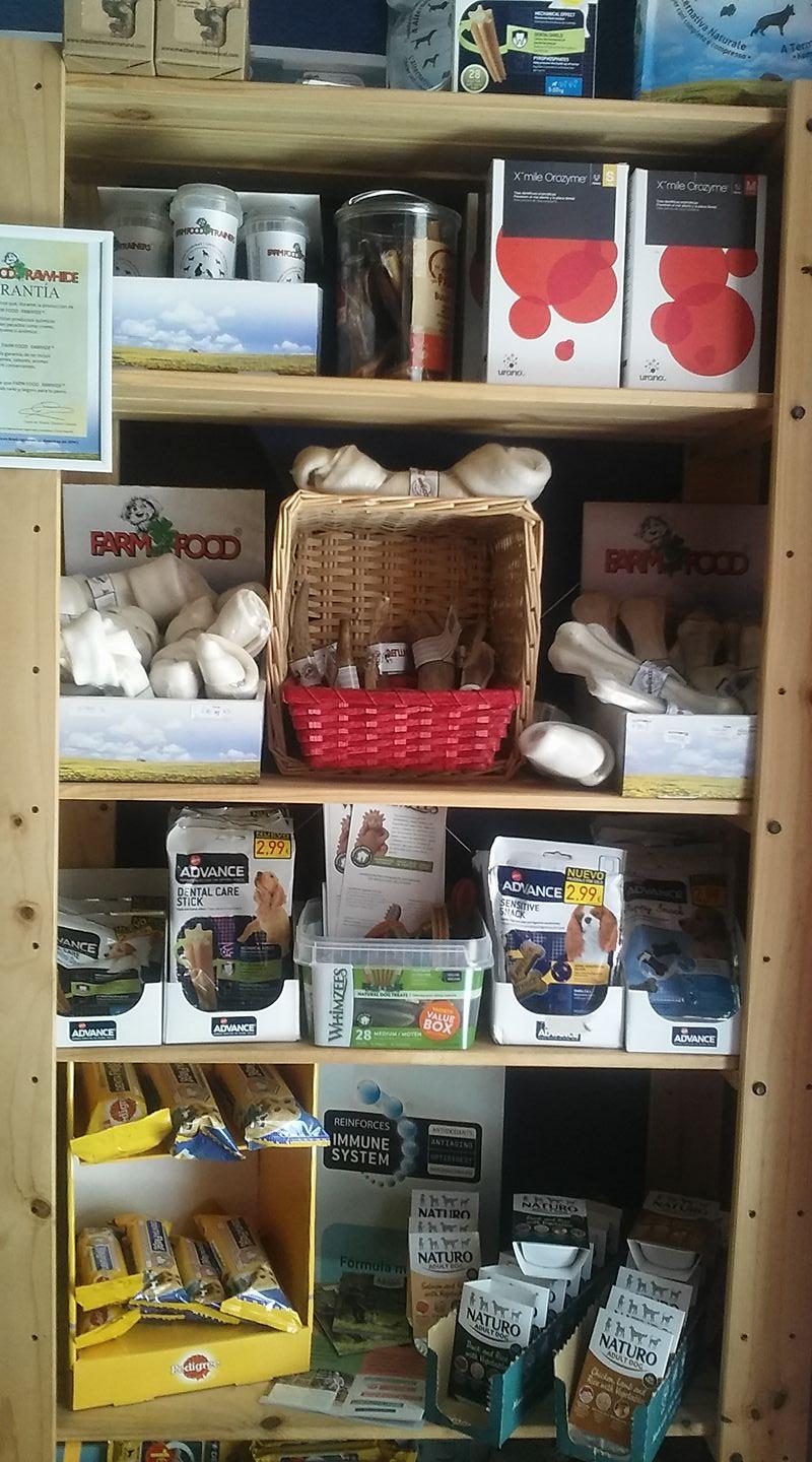 En lo referente a la alimentación podremos encontrar las principales marcas de piensos así como gran variedad de premios o snacks naturales, tiras dentales que ayudan a prevenir la formación de sarro y reducen la placa bacteriana. O los fabricados por Farmfood, naturales y secos, que están pensados para ayudar en la educación y adiestramiento de su mascota.