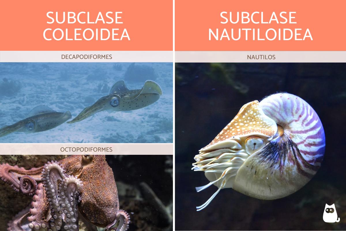 Como hemos mencionado, la taxonomía de los cefalópodos es más amplia porque poseen una diversidad importante de grupos extintos. No obstante, en la actualidad viven los siguientes: