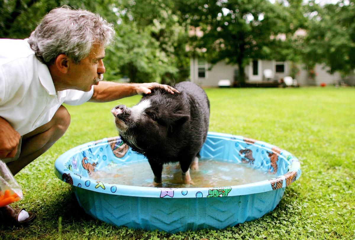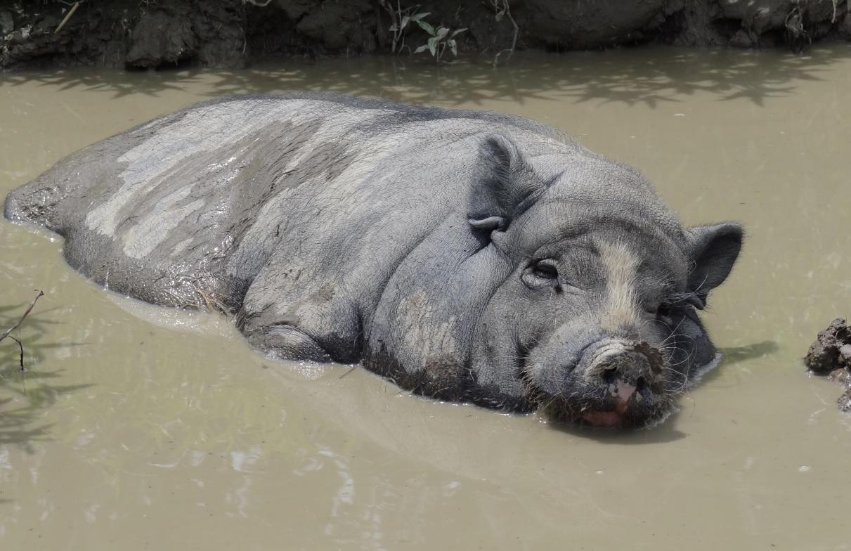 Finalmente añadimos que los cerdos no sudan por el cuerpo, eliminan el sudor por el extremo superior de la nariz. Por ese motivo y ante altas temperaturas será beneficioso para él proporcionarle una piscina pequeña para niños o un agujero de barro, ¡irresistible! Luego le limpiarás con agua clara.