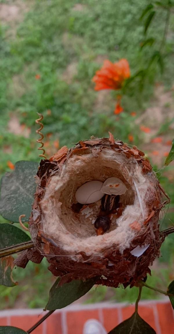 Recién dos colibríes pusieron su nido en mi casa tengo dos árboles y muchas muchas flores naranjas ,su nido está en medio de dos plantas delgadas y esto hace que parezca un pequeño columpio ,puso dos pequeños huevos y uno de ellos ya nació el otro está por nacer , y no tienen miedo los adultos y realmente me encanta tenerlos es algo raro supongo que pase esto , esto es muy completo y resolvio muchas dudas que tenía al respecto
