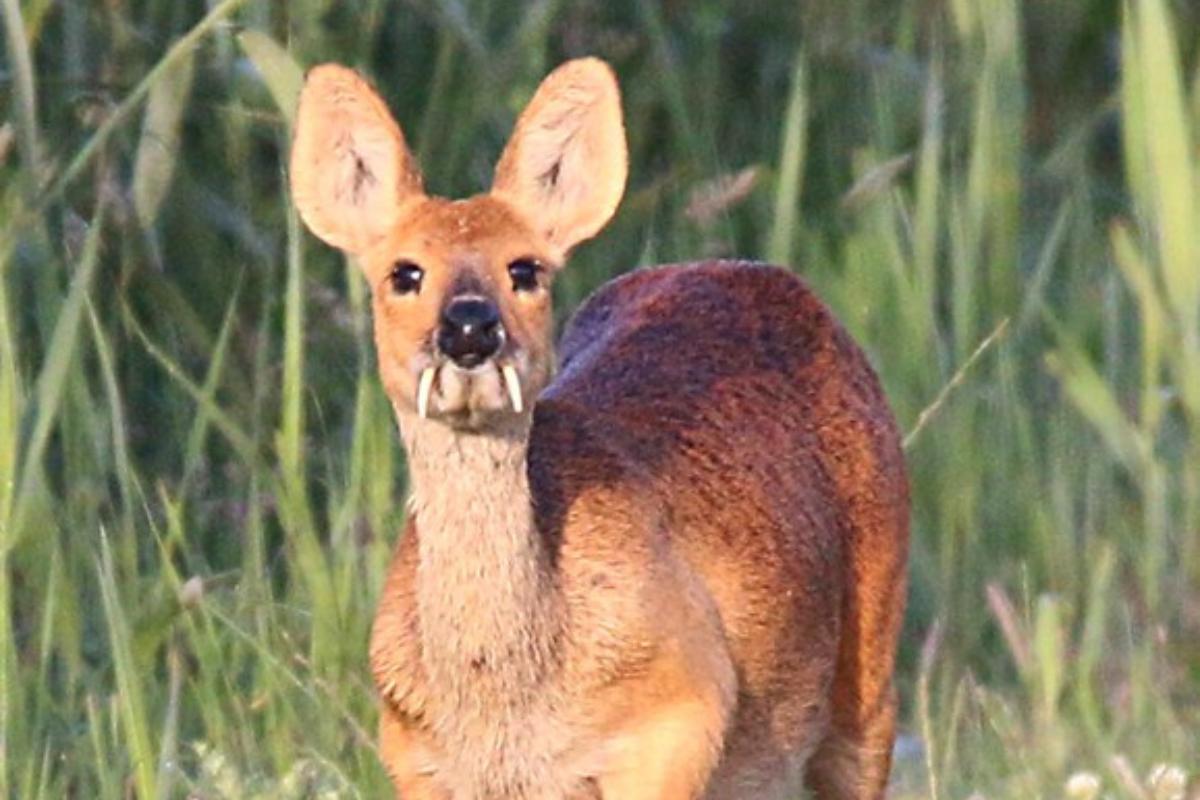 Los ciervos son un variado grupo de animales que pertenecen a la familia Cervidae. Una de sus características generales es que la mayoría de los ciervos machos poseen astas, aunque los renos hembras, también las poseen. No obstante, los datos evolutivos indican que los ancestros de los ciervos tenían tanto astas como colmillos, pero con el paso del tiempo, las especies grandes desarrollaron mejor este tipo de cuernos y perdieron los colmillos, mientras que ciertas especies pequeñas, redujeron o perdieron sus astas y mantuvieron unos caninos prominentes. Así, nos encontramos con el ciervo de agua (Hydropotes inermis), un peculiar miembro de esta familia que carece de astas pero tiene prominentes dientes caninos. Sigue leyendo esta ficha de ExpertoAnimal y conoce los datos sobre el ciervo vampiro o con colmillos como popularmente se le conoce.