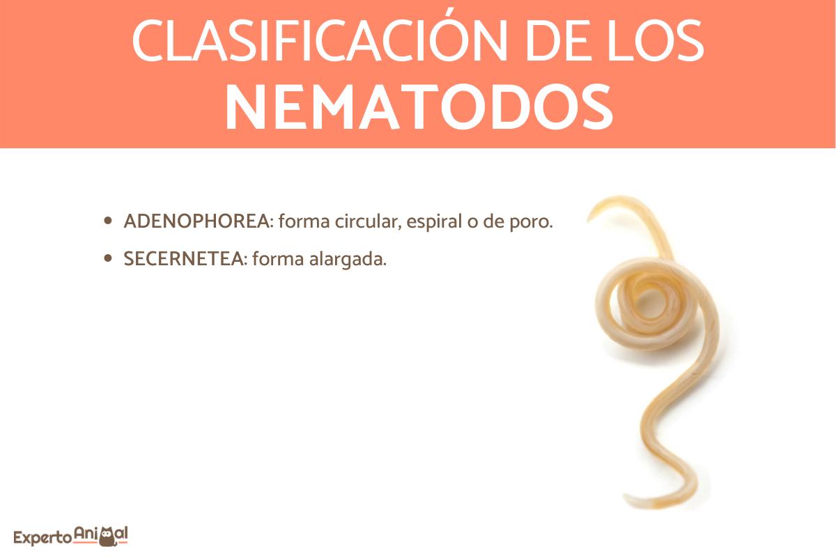- Adenophorea: sus órganos sensoriales tienen forma circular, espiral o de poro. Dentro de esta clase podemos encontrar a la forma parásita Trichuris trichiura.