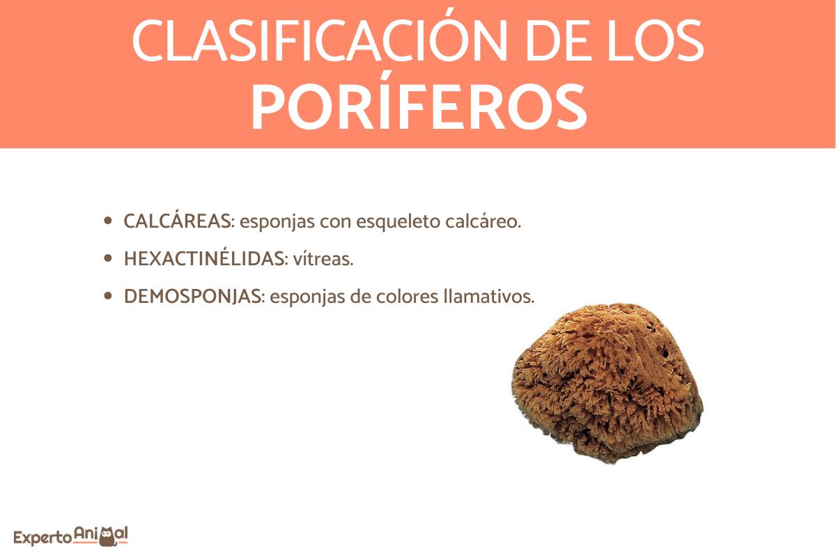 A este grupo pertenecen las esponjas, cuya principal característica es que sus cuerpos poseen gran cantidad de poros y un sistema de canales internos que filtran el alimento. Son sésiles y dependen en gran medida de que el agua circule a través de ellos para obtener alimento y oxígeno. Carecen de verdadero tejido y por tanto de órganos. Son exclusivamente acuáticos, principalmente marinos, aunque existen algunas especies que habitan aguas dulces. Otro rasgo fundamental es que están formados de carbonato de calcio o de sílice y colágeno.