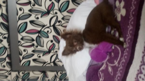 El chocolate es otro de los colores del chihuahua que nos podemos encontrar. Es un marrón que puede confundirse con otras tonalidades de la misma gama cromática, como el leonado. Puede establecerse una diferencia atendiendo a la coloración de la trufa, que se ve influida por la del manto. Así, la trufa de los perros es habitual que sea negra, pero también encontramos trufas marrones. En este caso, estaríamos ante un chihuahua color chocolate, pues todos los ejemplares de este color tendrán la trufa marrón.