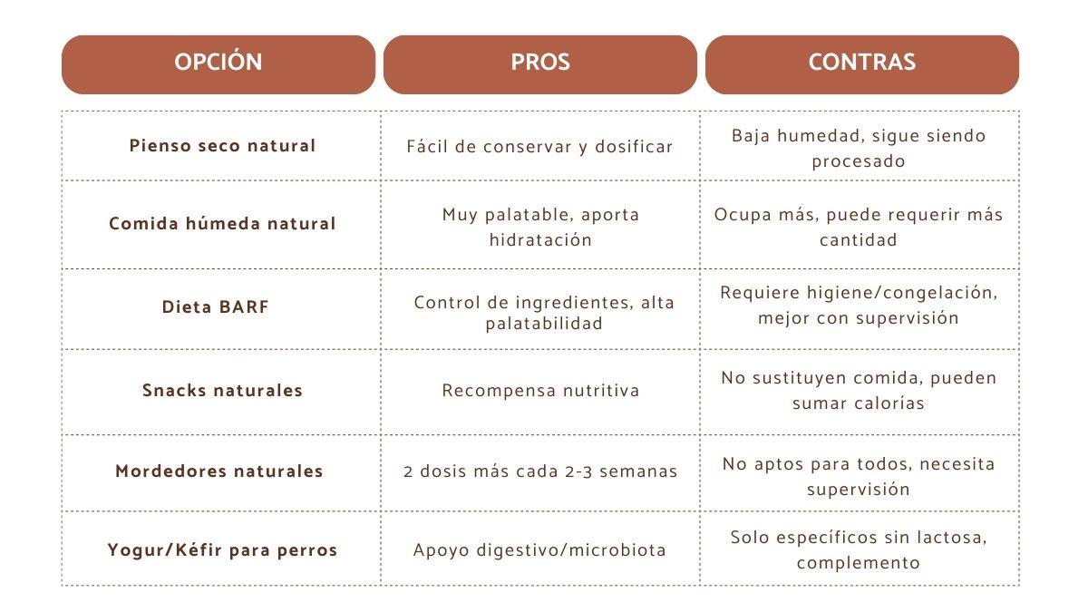 La alimentación natural no se limita a un único formato. Hoy en día encontramos diferentes opciones que permiten adaptar la dieta del perro a su edad, gustos, salud y rutina familiar.