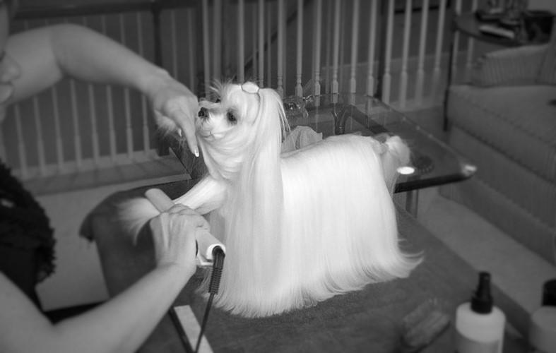 El secado del pelo del bichón maltés deberá hacerse con un cepillo y secador. Este paso es importante ya que el pelo húmedo tiende a rizarse con mayor facilidad.