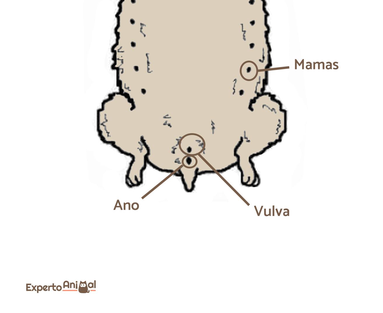 De la misma forma que el cuerpo de los hámsteres machos suele acabar en punta por los testículos, el cuerpo de las hembras acostumbra a ser redondeado por la ausencia de los mismos. No obstante, la mejor forma de saber si un hámster es hembra o macho es a través de sus genitales, puesto que las hembras tienen una distancia entre el ano y la papila genital (vulva) muy corta, situándose un orificio muy cerca del otro. Además, en las hembras es posible notar la presencia de pezones en la parte inferior del abdomen, aunque en ejemplares jóvenes no siempre es fácil.