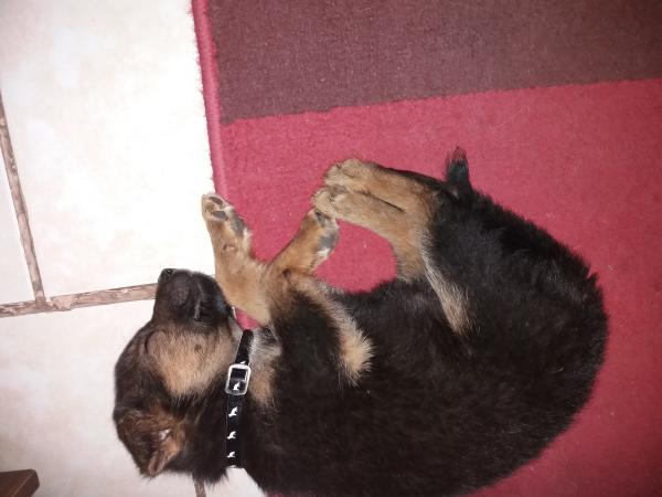 Mi perrita pastor alemán tiene casi 4 meses y es muy activa y desobedece mucho pero ya sabe unos trucos como ven conmigo, dame la patita, quédate quieta y siéntate, también ya la estoy enseñando a pasear en la correa pero casi siempre la muerde y tira de la correa AUN ASI LA AMO MUCHO :)
