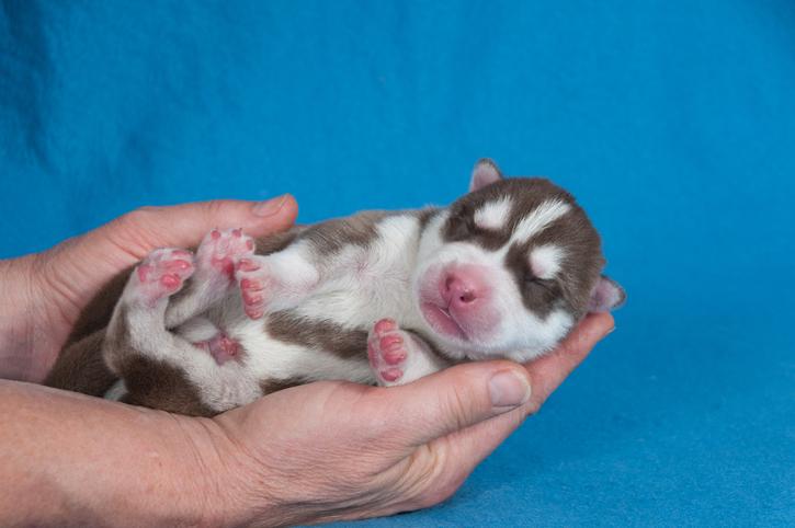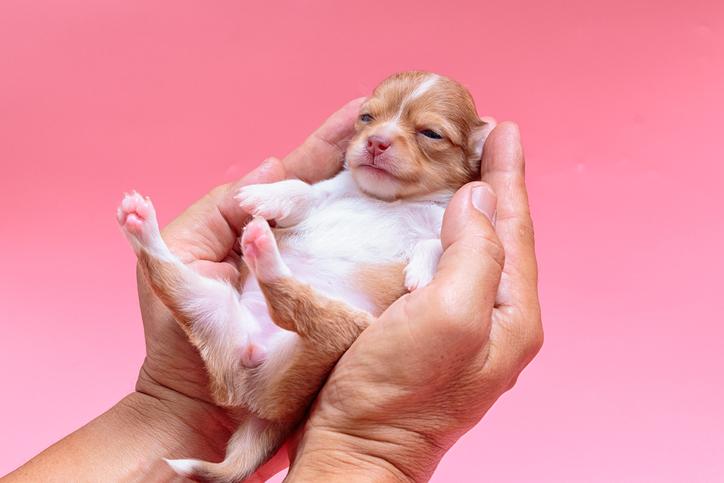 - Colocamos al cachorro boca arriba, apoyado sobre nuestra mano.