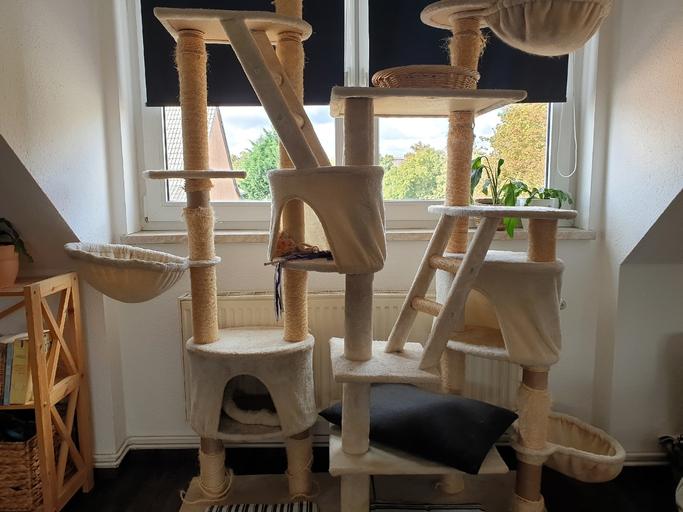 Esta estructura representa una parte importante del hábitat del gato. Los rascadores están envueltos con cuerdas para que los gatos puedan rascar y limar sus uñas, de manera que no solo sirven para trepar y descansar en alto. Estos rascadores permiten que el animal libere energía y lleve a cabo otra de las conductas propias de la especie: el marcaje. Así pues, si has notado que tu gato araña los muebles, ¡ponle rascadores!