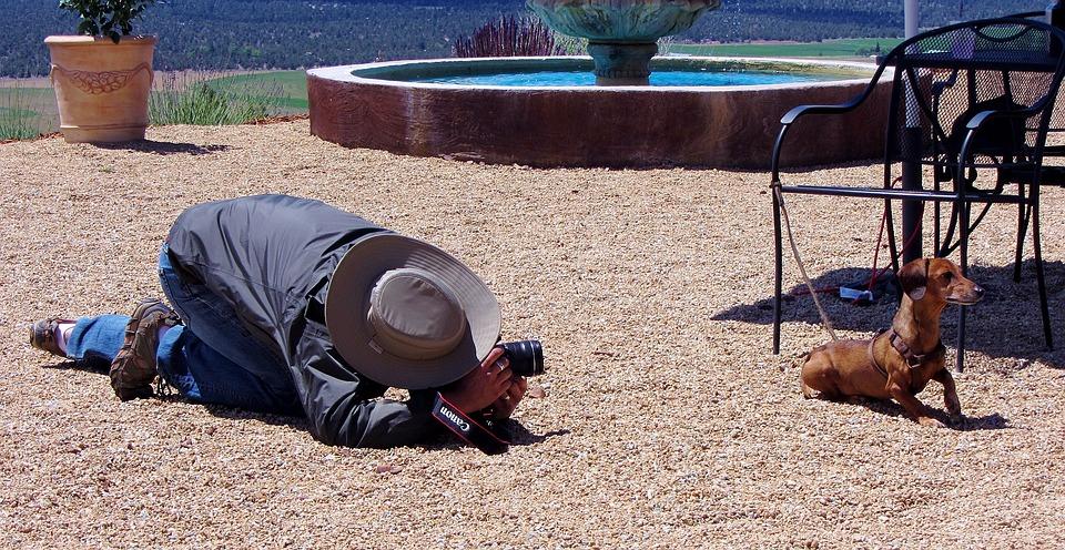 Esto quiere decir que la fotografía queda mejor si te pones a su altura y enfocas hacia sus ojos, salvo que expresamente pretendas tomarle una imagen desde arriba. Por lo tanto, prepárate para agacharte o echarte al suelo. Pero busca diferentes ángulos para no hacer todas las fotografías iguales. Para los retratos en primer plano, mejor disparar ligeramente desde abajo.