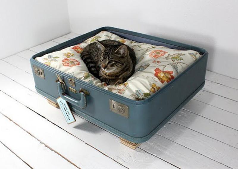Aunque hacer una cama para gatos con una maleta se presenta como una opción de cama casera, es todo un reto en cuanto a manualidades. Al igual que en las otras opciones, lo primero que haremos es reunir los materiales necesarios. En este caso, tendremos que buscar una maleta de tapa dura, cuatro patas de madera y una almohada o cojín cómodo para tu felino.