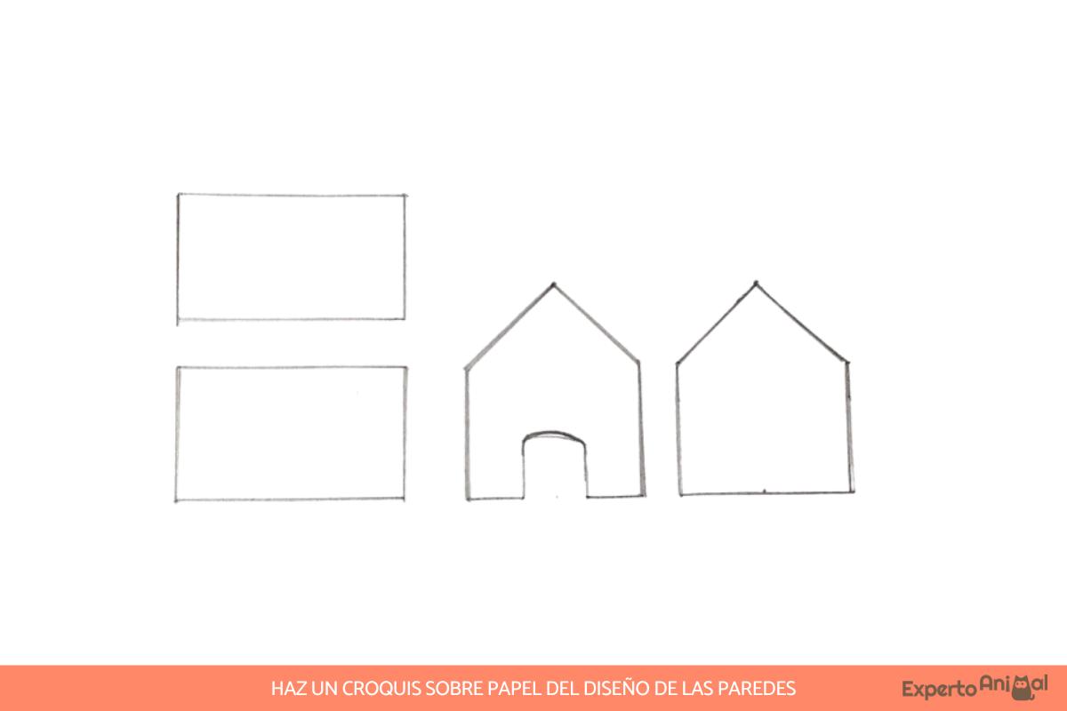 Para que el proceso de aprendizaje de cómo hacer una casita para perros sea completo, desde ExpertoAnimal, te recomendamos que construyas una casa con tejado a dos aguas (no plano). De esta manera, si llueve el agua caerá al suelo. Para hacerlo así, debes recordar que las tablas correspondientes a la entrada y a la pared trasera deben terminar en triángulo. Todo en una misma tabla, nunca en dos.