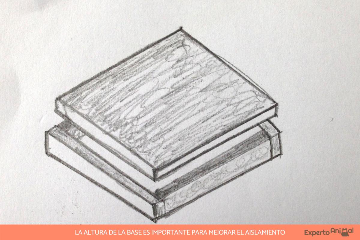 - Altura de la base: no es buena idea construir la casa del perro a ras de suelo. Se seguirá filtrando la humedad y si llueve mucho, incluso, podría inundarse.