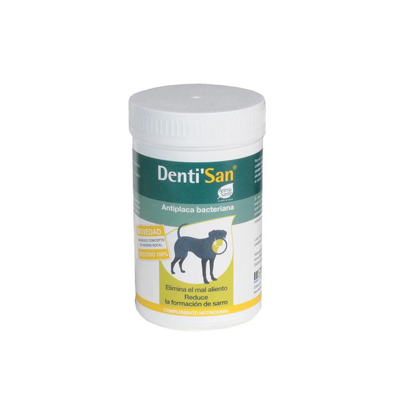 Los suplementos nutricionales, conocidos también como nutracéuticos, pueden aportar beneficios para la salud de nuestros perros en muchos sentidos. Así, en el mercado encontramos también suplementos destinados a mejorar la salud bucodental de los perros gracias a su acción contra la formación de placa bacteriana y sarro. Un ejemplo de ello es Denti’San, un suplemento nutricional natural desarrollado por Stangest para cuidar la salud dental de perros y gatos. Está elaborado con alga parda (Ascophyllum nodosum), excelente para prevenir la placa y el sarro, y hojas de alcachofa y arándonos rojos, ambos con un gran poder antioxidante, entre otros ingredientes. Para ofrecer este suplemento a nuestro perro tan solo debemos mezclar la cantidad indicada con su alimento, que corresponde con 1 cuchara por cada 5 kg de peso.