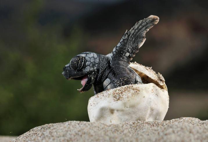 Una vez consiguen salir de los huevos, tienen que salir también del hoyo donde estos han sido desovados, algo que es especialmente complicado en especies de tortugas marinas, donde alcanzan el medio metro de profundidad.