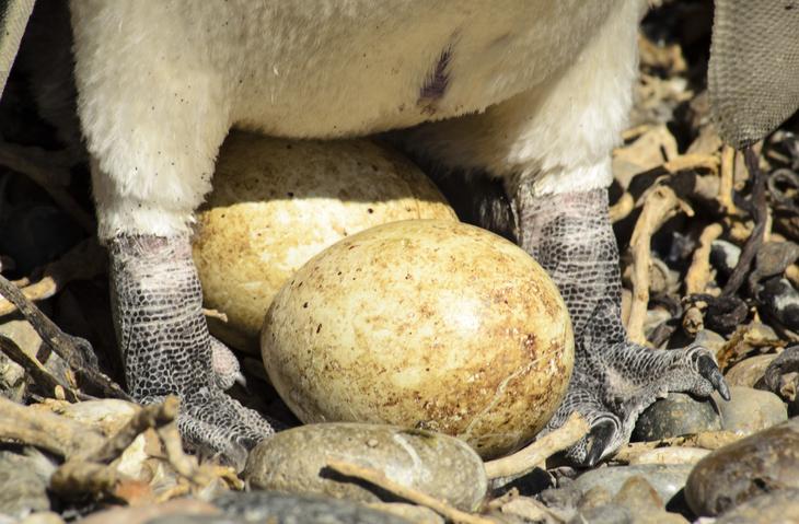 Los huevos de pingüino tienen las mismas partes que el resto de huevos de aves, las cuales son: