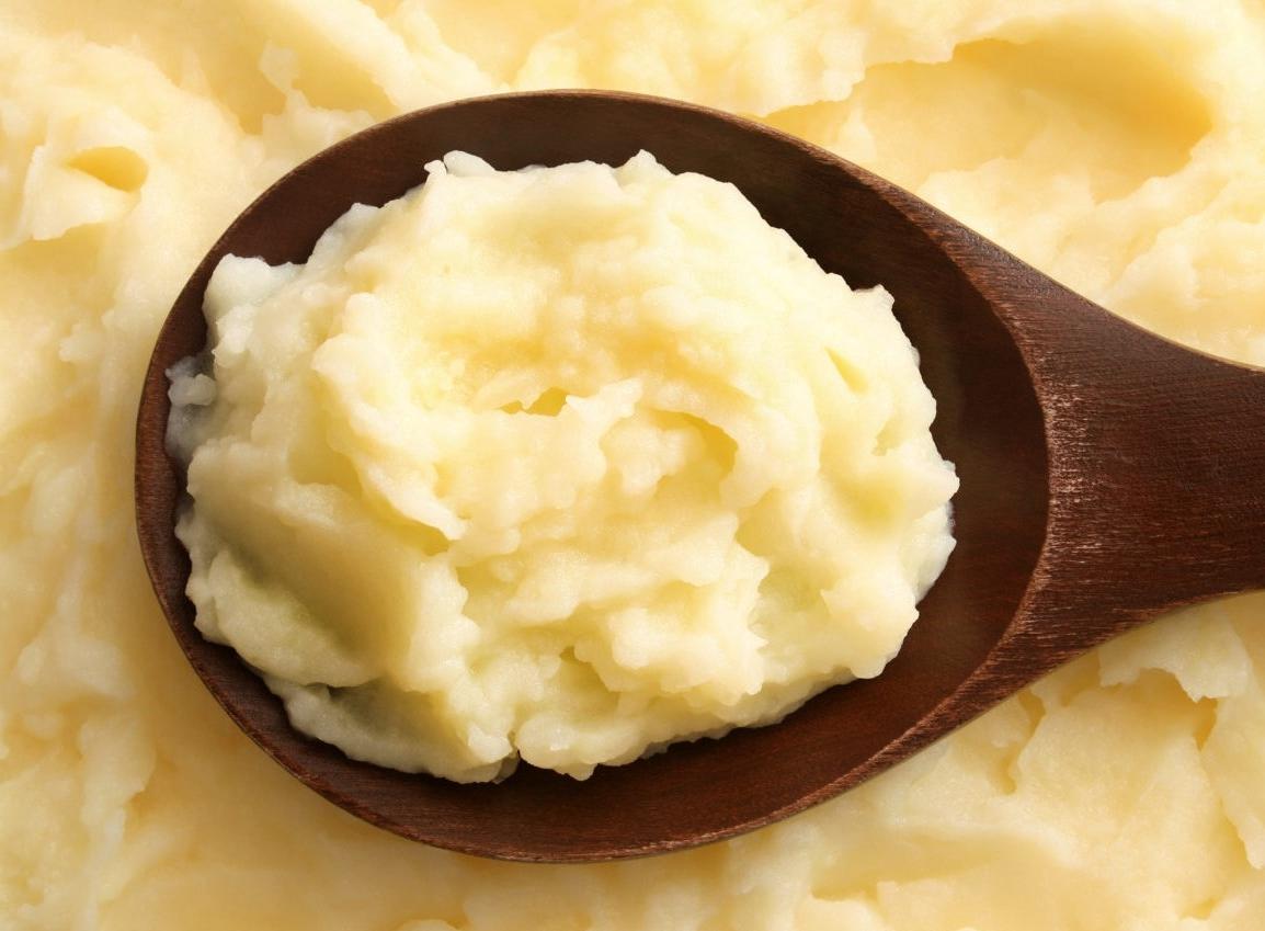 Lava muy bien las papas, retira la cáscara y ponlas a cocer en agua con sal. Agrega el pollo o el pavo, sin piel ni grasa. Cuece hasta que todo esté blando. Escurre el agua, deja enfriar un poco y luego aplasta las patas hasta formar un puré. Desmenuza el pollo y mezcla bien con el puré. ¡Listo!
