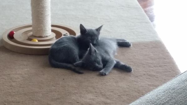 Por lo contrario, cuando dos gatos juegan, podrás observar que tienden a imitar los movimientos uno del otro, alternando el rol de quien defiende y quien ataca constantemente. Durante su diversión, podrán emitir maullidos y hasta bufar, pero estos serán más cortos y mucho menos intensos. Y cuando terminen de jugar, no tendrán miedo uno del otro, mismo cuando elijan distanciarse por algunos minutos para descansar tranquilos.