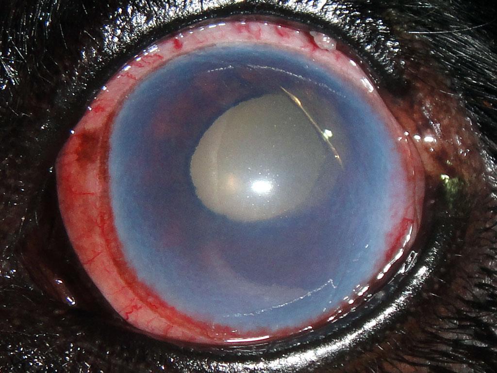 No siempre es fácil de detectar, ya que al principio solo observaremos la capa de opacidad al entrar en contacto con la luz, no obstante, cuando avanza, podremos detectar que cada vez es más gruesa. A medida que avanza la enfermedad el ojo se torna completamente blanco y es cuando el perro se queda ciego.