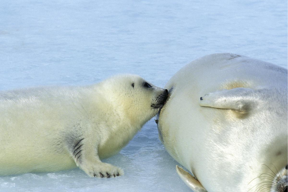 - Especies polares: como la foca arpa (Pagophilus groenlandicus), programan sus nacimientos para coincidir con el deshielo primaveral, cuando las plataformas de hielo aún proporcionan protección y las condiciones son menos extremas. En el caso de esta especie, los partos ocurren masivamente entre finales de febrero y marzo, creando espectaculares congregaciones de miles de hembras pariendo simultáneamente sobre el hielo.