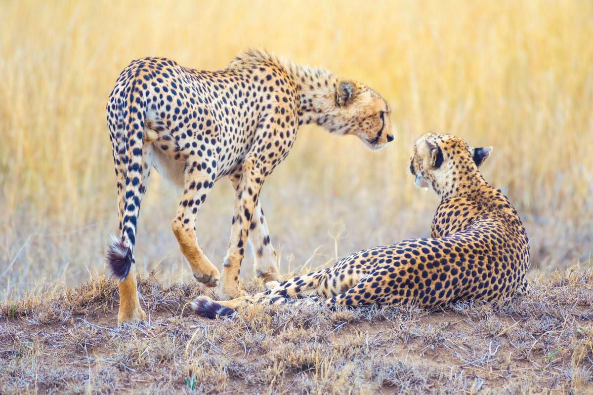 - Apareamiento. Las hembras alcanzan la madurez sexual a los 20-24 meses de edad. Una vez que acepta a un macho, se lleva a cabo el apareamiento. El proceso no es largo y puede durar desde unos pocos minutos hasta una hora. Los guepardos tienen un comportamiento relativamente rápido y no permanecen mucho tiempo copulando, ya que prefieren mantenerse en movimiento debido a su naturaleza territorial y sus necesidades de caza. La fecundación interna ocurre cuando el esperma del macho llega al óvulo de la hembra, lo que da inicio a la preñez.