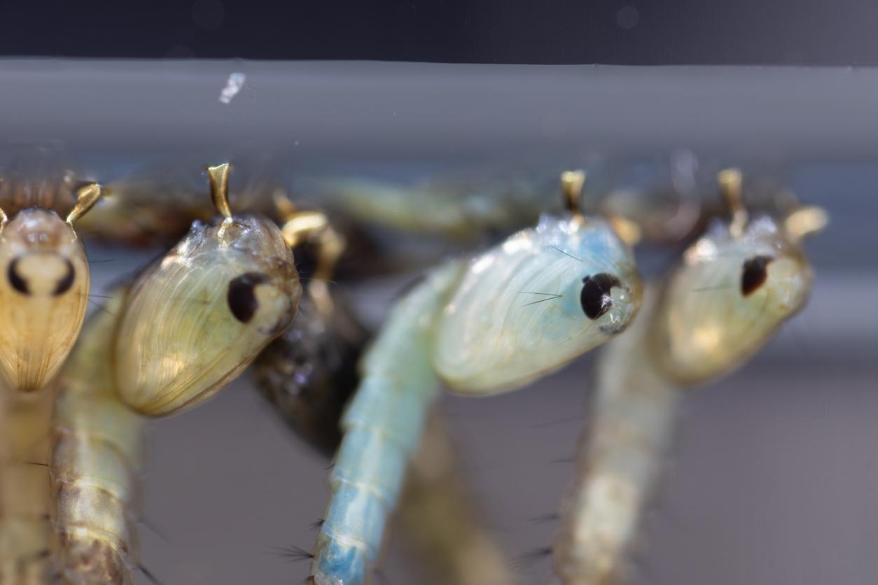 Las larvas de los mosquitos se caracterizan por ser vermiformes, es decir, tienen apariencia de un gusano. Como mencionamos son de hábitos acuáticos y respiran directamente del aire. En esta fase son activas en cuanto a la alimentación, que pueden realizar gracias a sus mandíbulas, para lo cual raspan superficies, filtran el agua o incluso depredan larvas de otras especies, consumen detritos, microrganismos y hasta pequeños invertebrados.
