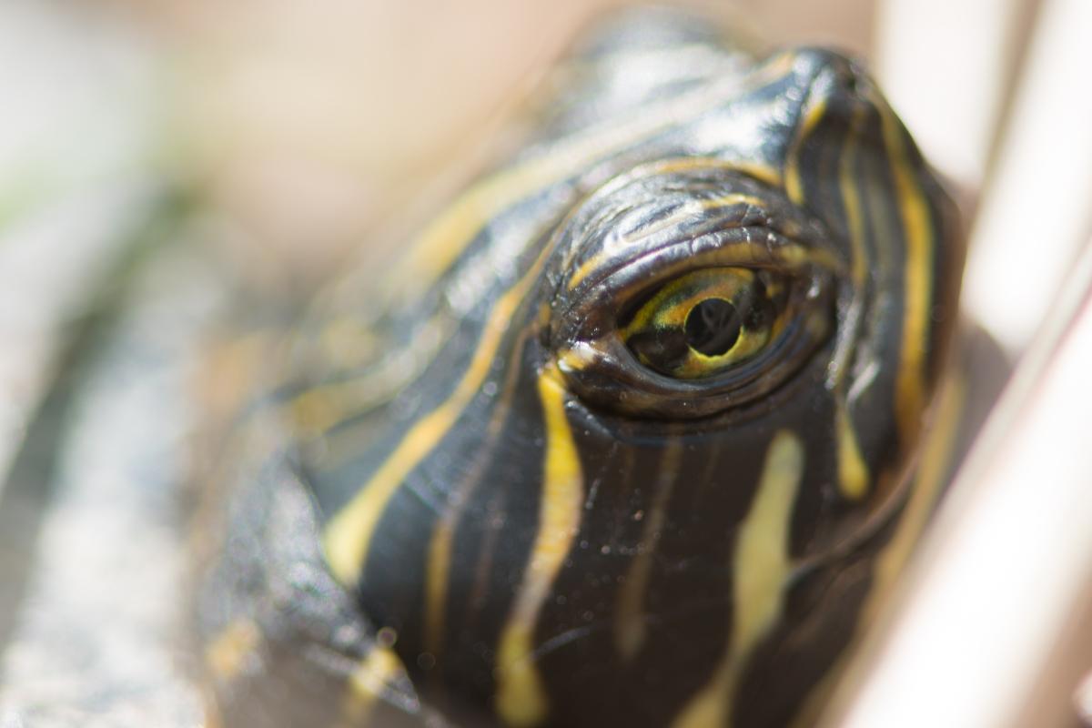 Para enfocar, las tortugas de agua, en vez de usar la córnea, utilizan el cristalino, que es una especie de lente y en estas especies se encuentra fuertemente curvado para optimizar la visión.