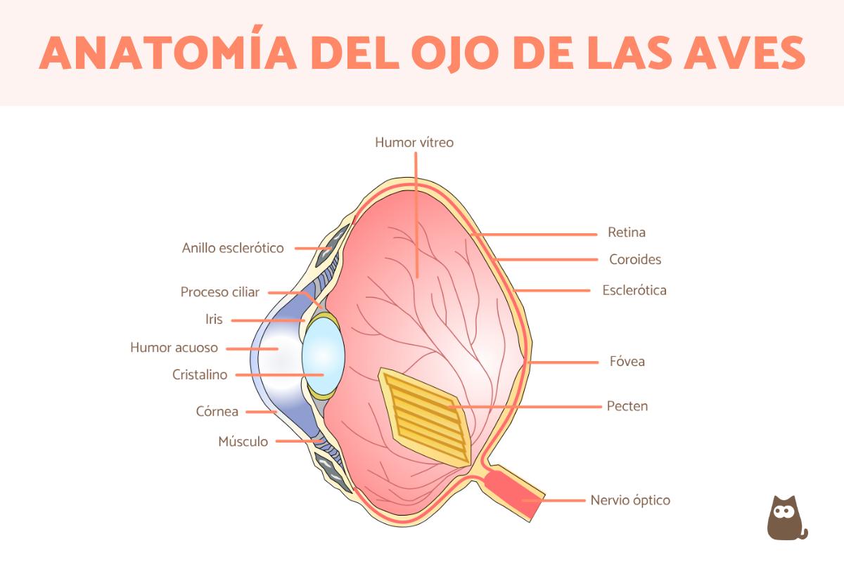 La anatomía del ojo de las aves es una maravilla de la evolución diseñada para satisfacer las necesidades específicas de estas criaturas en vuelo y su estilo de vida diverso. A continuación, describimos algunas de las características más destacadas de la anatomía ocular de las aves: