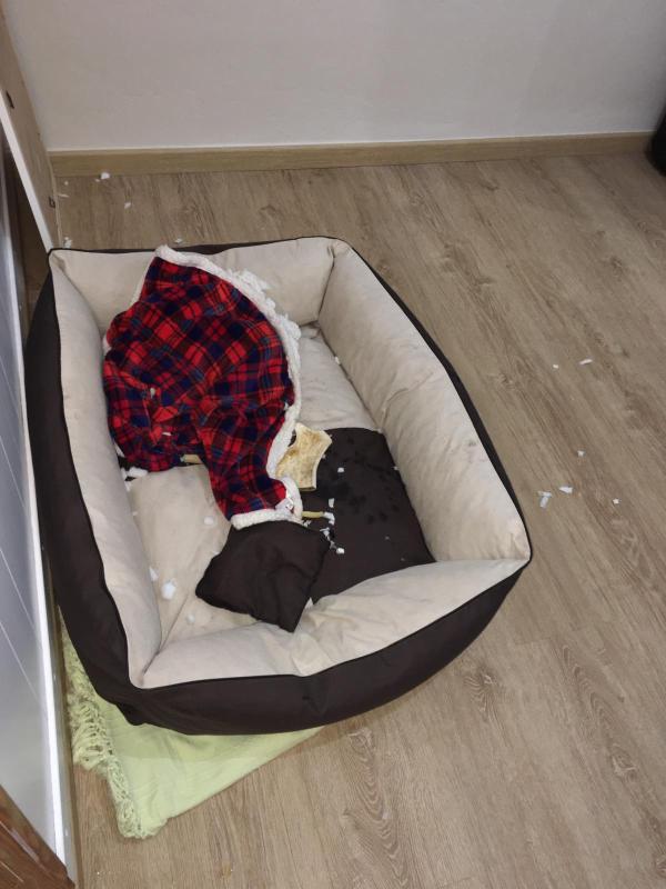 Hola, hemos adoptado a un perrito desde hace unos 5 meses ahora tiene 7, es bastante tranquilo y muy cariñoso, entando en casa con mi pareja y conmigo se porta genial a penas sabemos que está, salimos mucho de paseo, a correr y con grupos de perros, pero de vez en cuando le da por liarnosla en casa cuando nos vamos, le da por morder los cojines o mea su cama, no sabemos que hacer porque hemos probado con juguetes, creemos que tiene bastante actividad física como para que el problema sea ese...