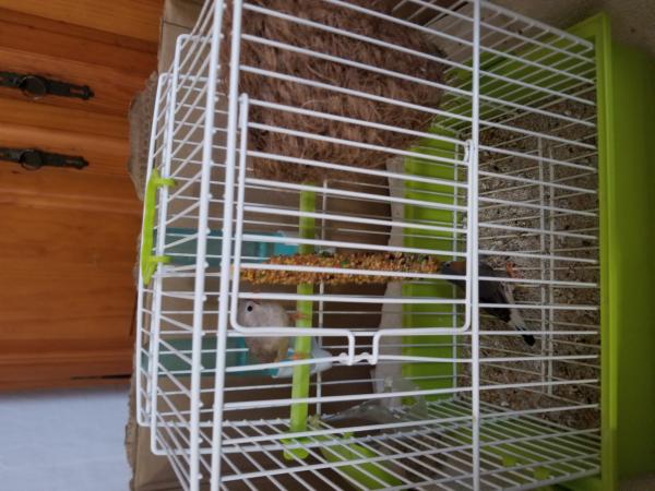 Añade un nido cerrado, que son sus preferidos, en la parte superior de la jaula y deja a su alcance en el suelo pelo de cabra que encontrarás en las tiendas. Observarás que uno de los dos (o ambos) empiezan a recogerlo y a colocarlo dentro del nido.