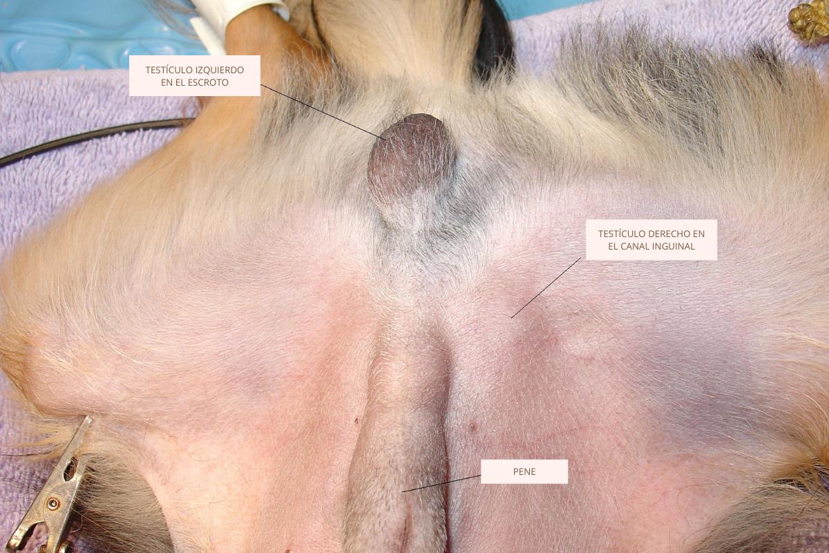 En un perro que padezca criptorquidia, los testículos no completan este trayecto de descenso.