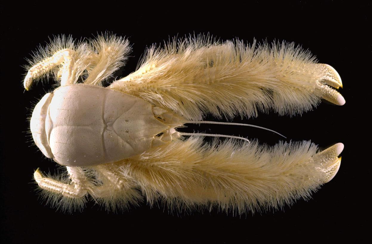 El cangrejo yeti es tan peculiar que no está emparentado con la familia de los cangrejos, sino con la familia de las langostas, no obstante, también guarda importantes similitudes con el resto de las especies pertenecientes a este grupo, siendo un claro ejemplo de esto las pinzas.