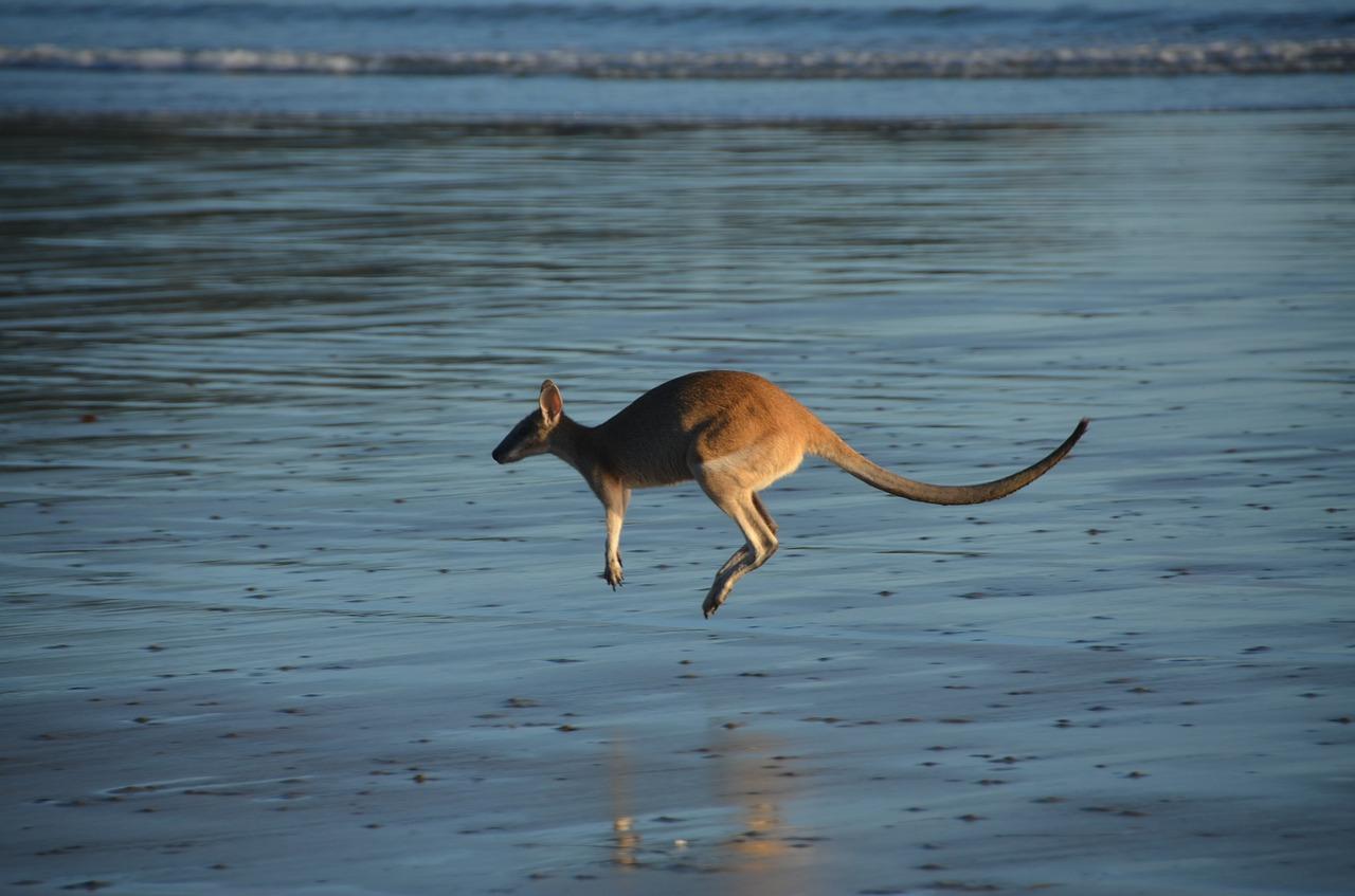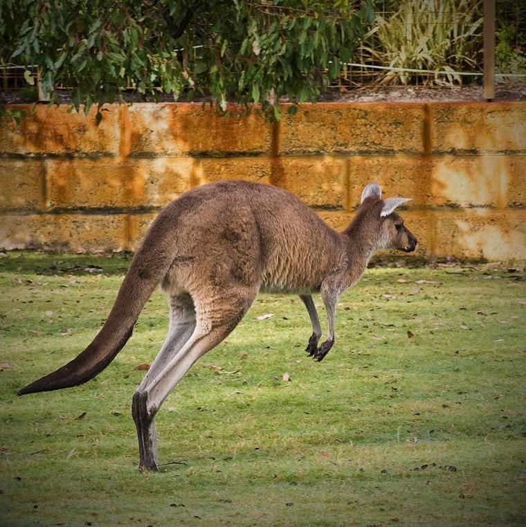 El canguro, un animal de grandes dimensiones, es el único que se desplaza dando saltos aunque esto no nos debe extrañar si tenemos en cuenta su anatomía, la cual parece perfectamente diseñada para este método de locomoción.