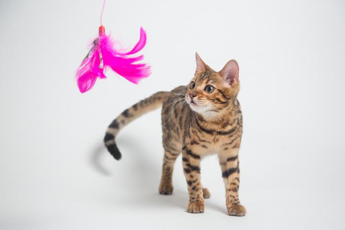 El juego es una actividad primordial para favorecer las conductas típicas en los felinos, como es el instinto de caza, por ese motivo se sienten especialmente atraídos hacia los juguetes tipo "caña de pescar" o aquellos que emiten sonidos diversos.