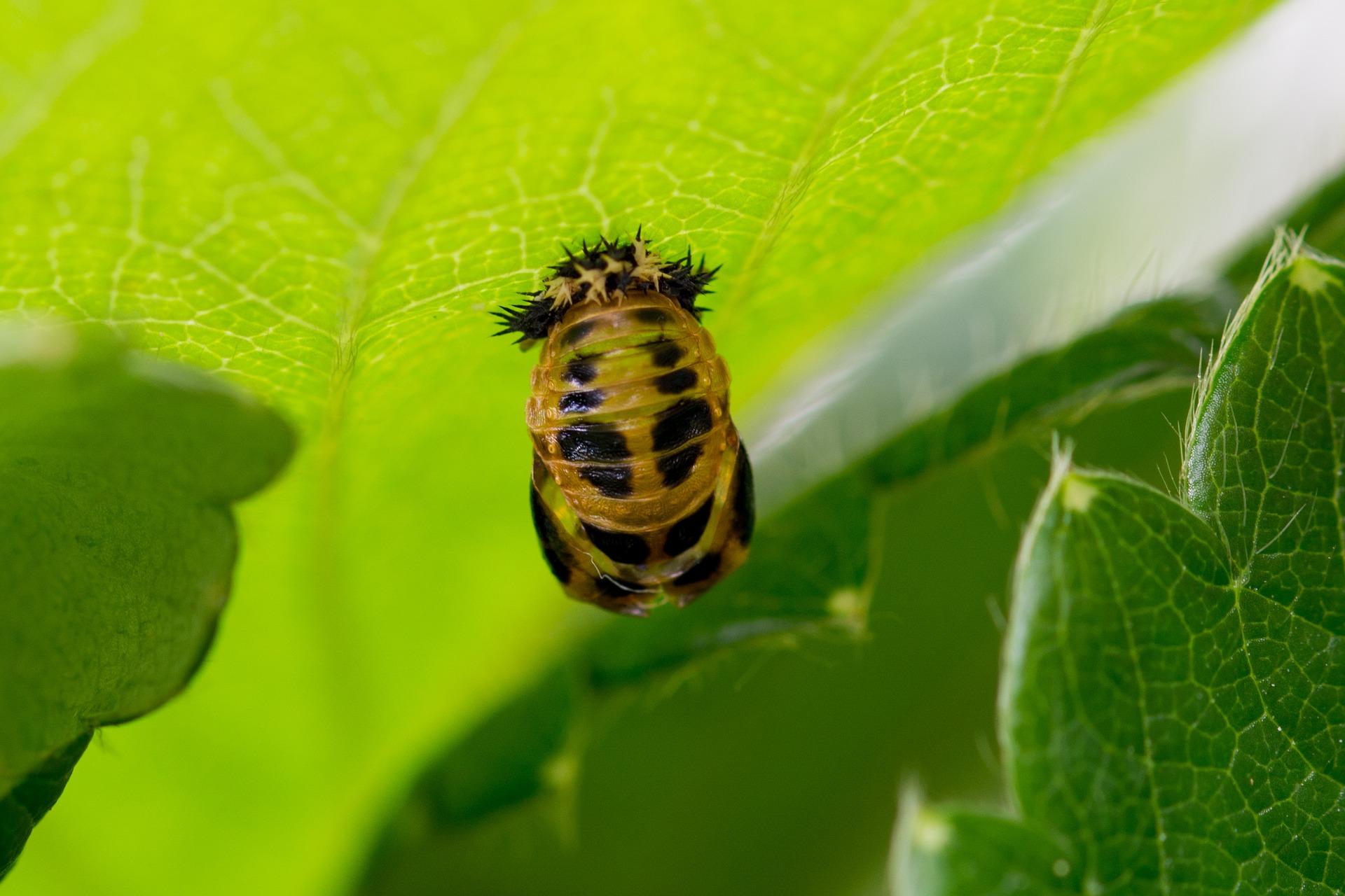A modo de ejemplo para visualizar mejor el desarrollo y ciclo de vida de una mariquita, tomaremos de ejemplo a la mariquita de veintidós puntos (Psyllobora vigintiduopunctada), por lo que en la imagen la encontramos en su estado de larva. Si quieres conocer otros tipos, no te pierdas nuestro artículo sobre Tipos de mariquitas.