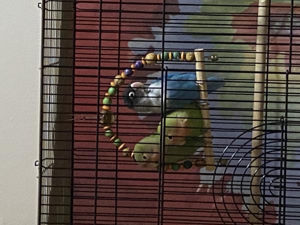 La jaula, además de espaciosa y con suficiente enriquecimiento ambiental como juguetes, columpios e incluso un espejo aunque no vayan a estar solos, debe tener barrotes horizontales. Debemos introducir barras a diferentes alturas como posaderos, y podemos buscar trozos de madera imitando ramas de árboles, pero sin tratar con productos químicos contra polillas, y sin barnizar.