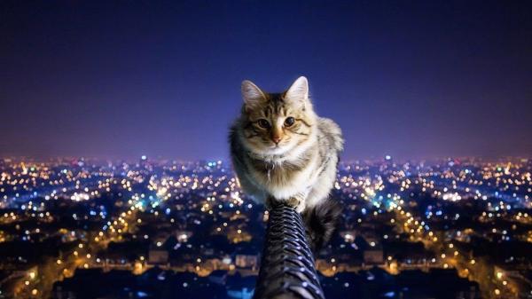 es normal este gato pero cuando lomiras enla noche sus ojos son de color azul y amarilli briyantes