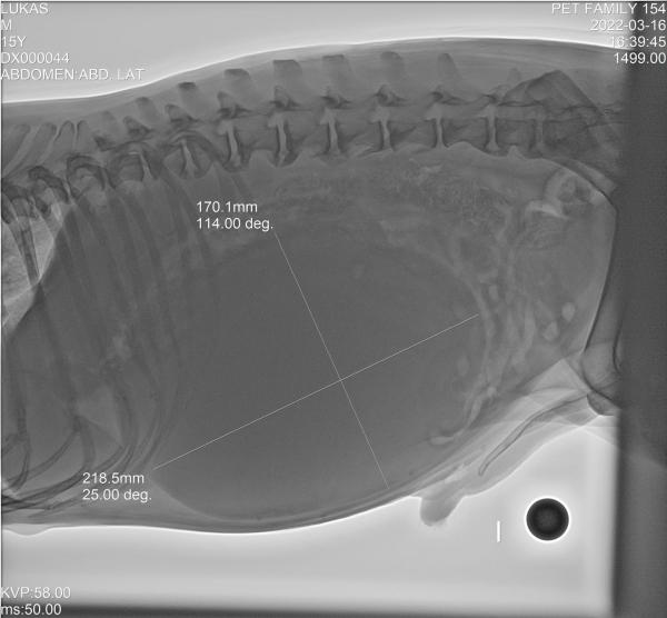 Tengo un perrito criollo que tiene 15 años. Es un perrito muy vital para su edad. Hace dos meses empezó una inflamación en el estómago y hasta ahora lo lleve al veterinario. Me indica el veterinario que tiene anemia ya que salió el examen en 3.800 y que debe ser más alto. También me dice que tiene el vaso muy inflamado (actualmente mide 17 * 21 CMS) y que debe quitárselo. Adjunto imágenes de las radiografías practicadas pero no sé qué hacer si operarlo o no. Me preocupa mucho, más cuando caso quedaría sin sistema inmune. Agradecería un consejo al respecto.